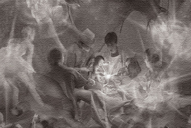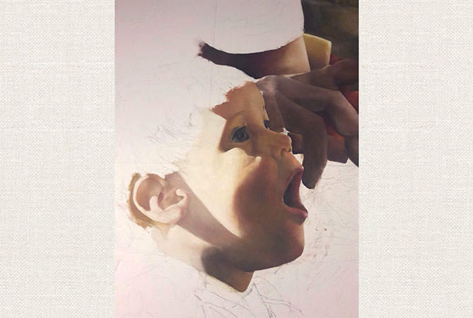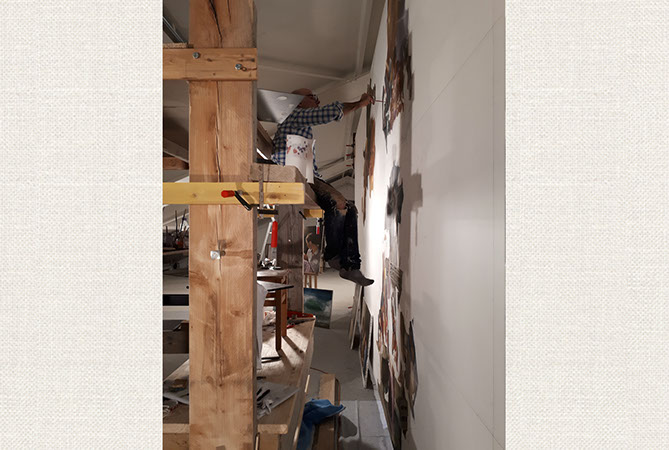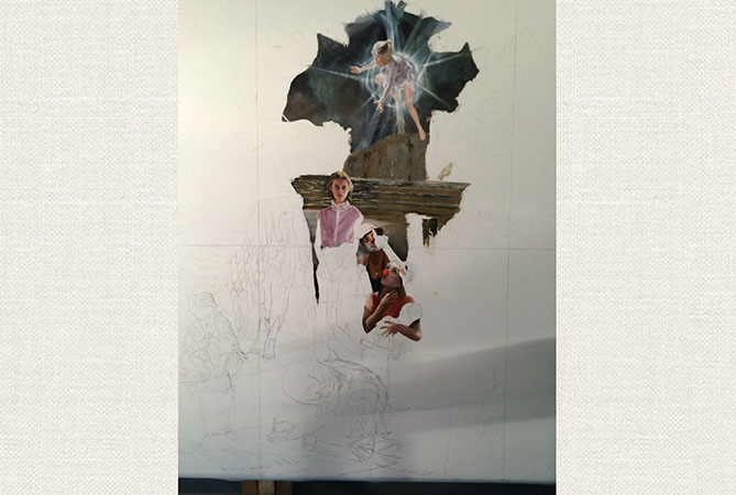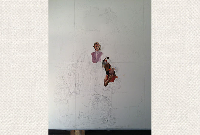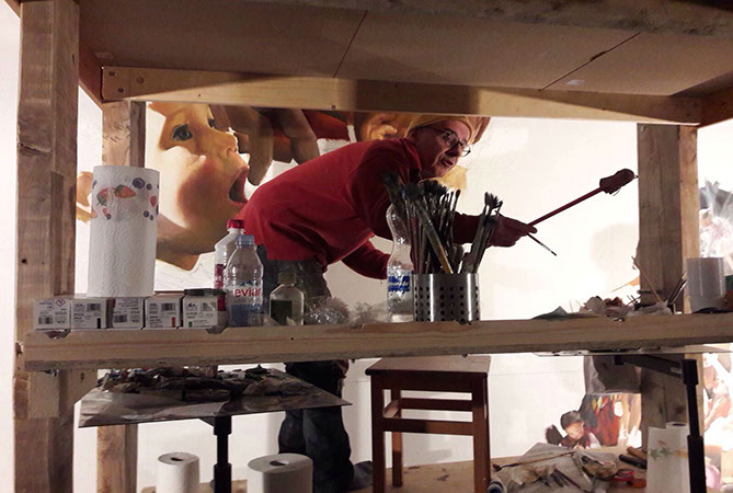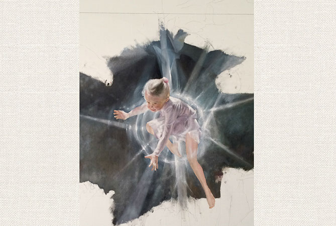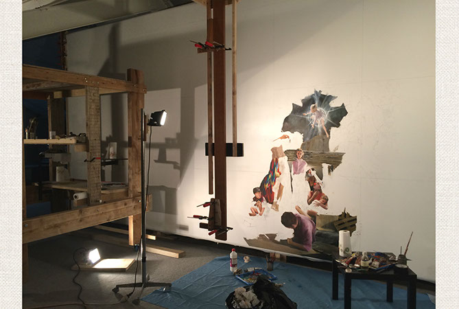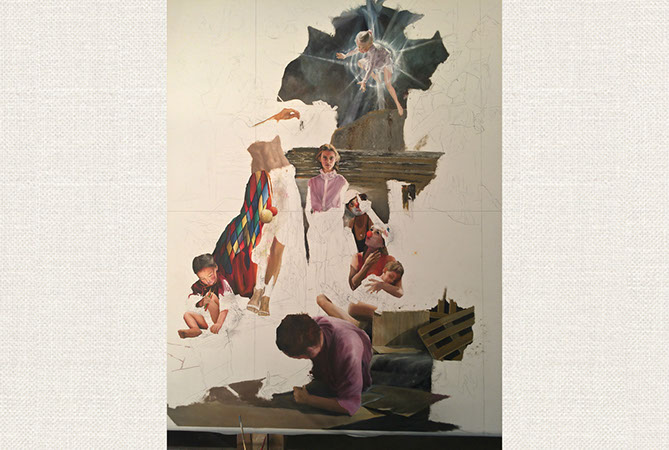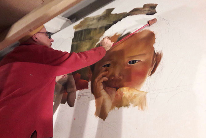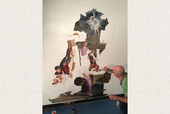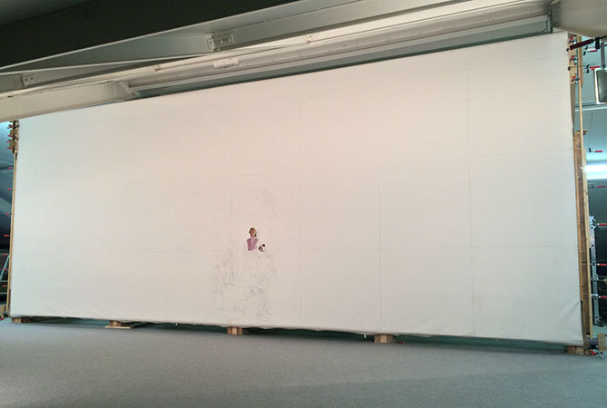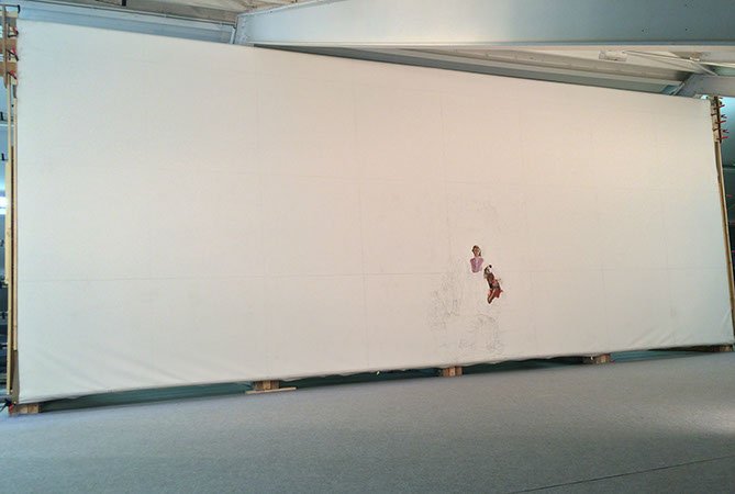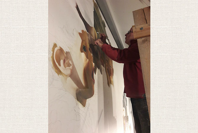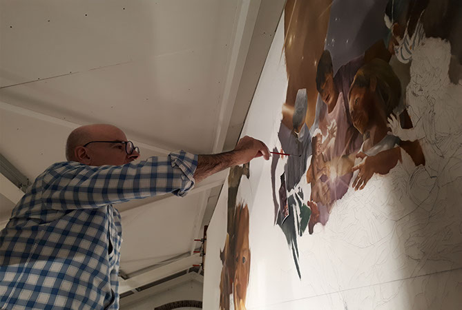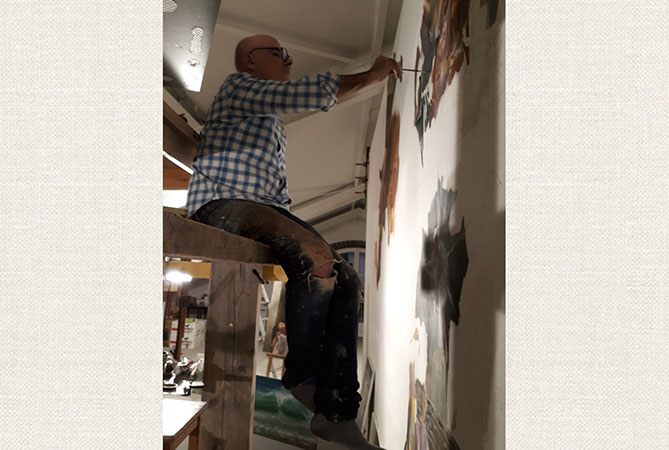 Peindre une œuvre de lumière à l'huile sur châssis de 8m x 4m en couleur intitulée " l'Autre " détail 1