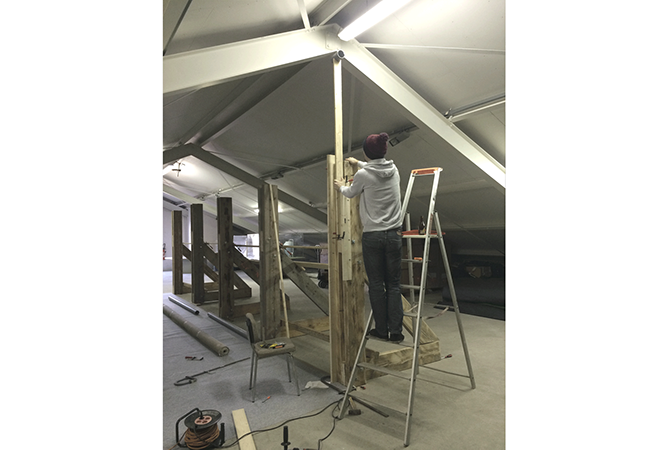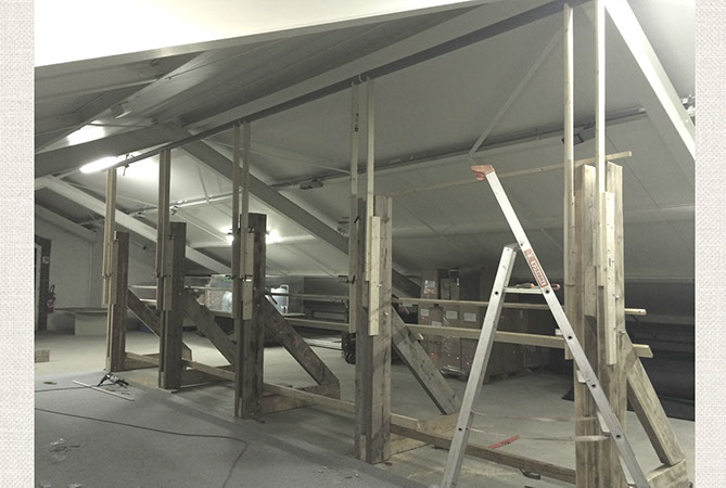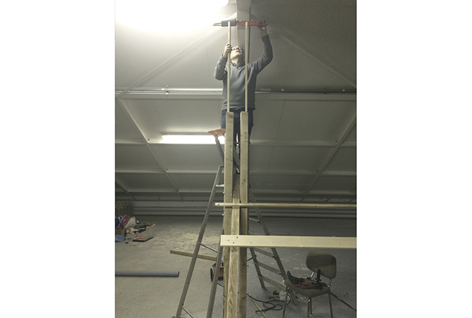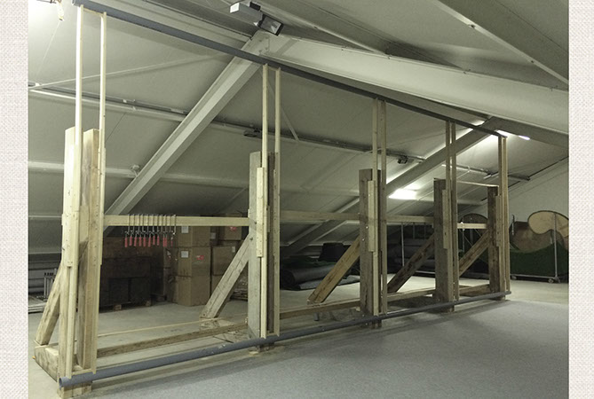 conception et réalisation de la structure sur laquelle la toile sera tendue et se déplacera de haut en bas