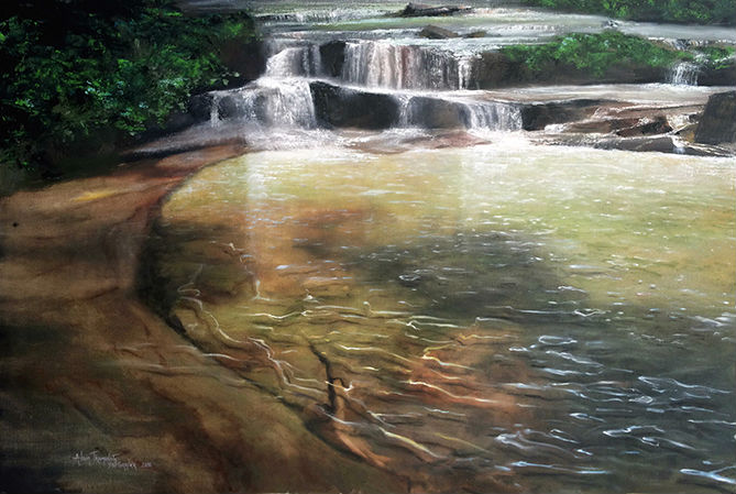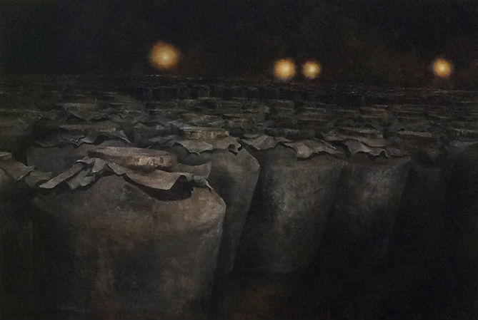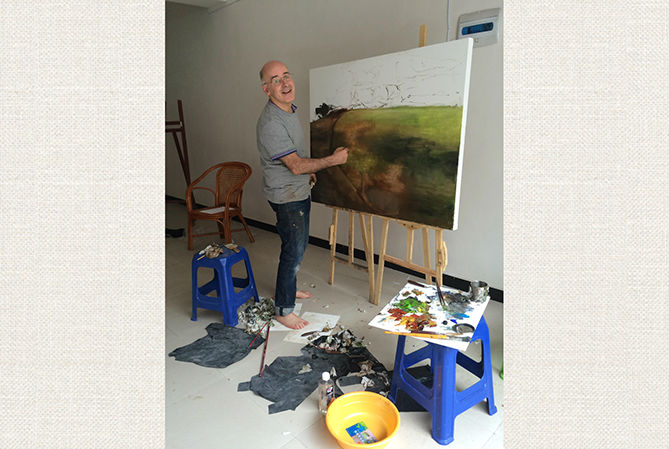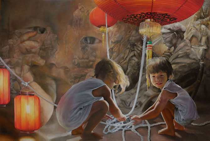 Œuvre réalisée et exposée en Chine Huile sur châssis 130 x 90