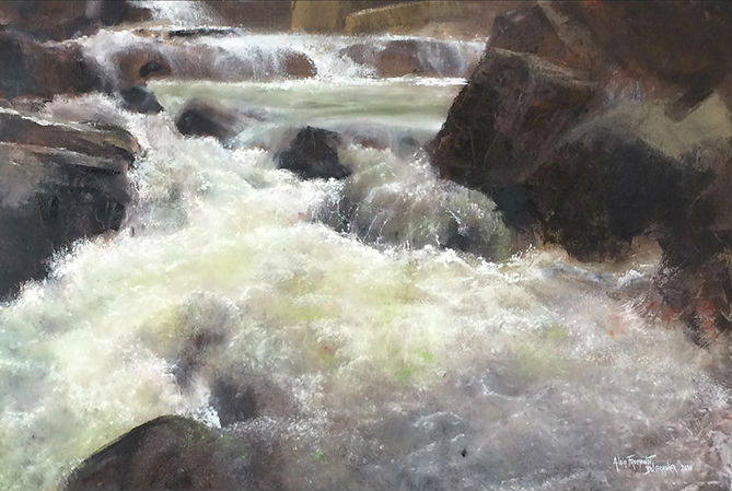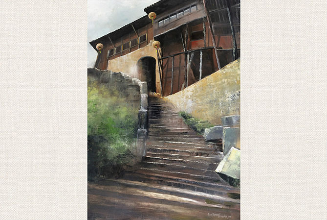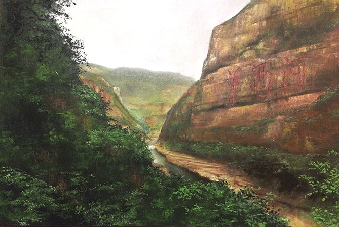 Œuvre réalisée et exposée en Chine Huile sur châssis 85 x 50