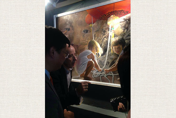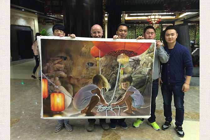 Œuvre réalisée et exposée en Chine Huile sur châssis 130 x 100