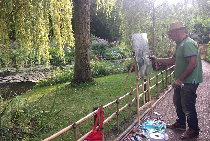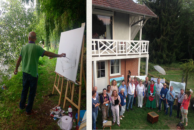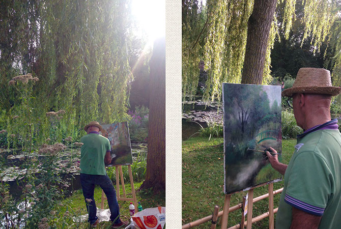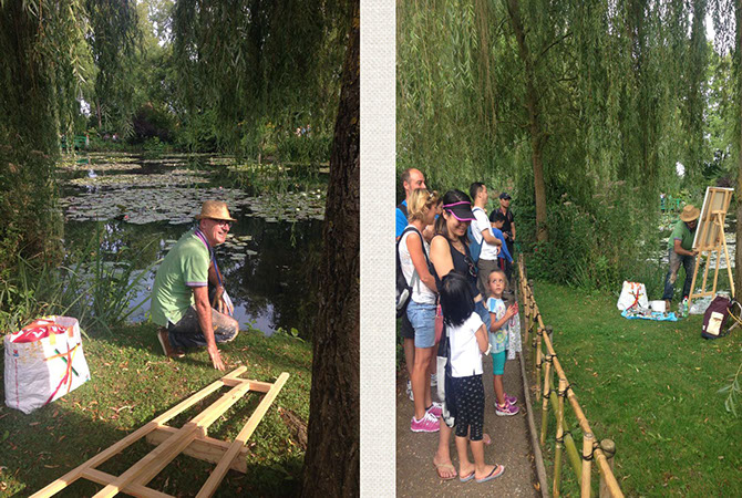 Le jardin de Monet à Giverny avec 24 peintres de nationalités différentes - Choisir l'angle de vue sympa et le peindre - Partager ce moment avec le public.