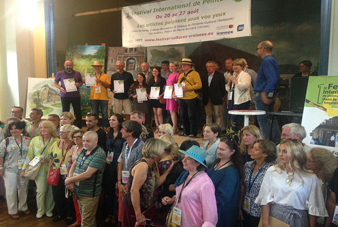 Le jury me remet le Prix du " Bateaux Atelier " et le Prix du public du Festival international de peinture en pleine air dans le berceau de l’impressionnisme. Je les remercie !